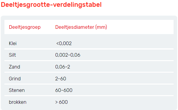 Specifiek oppervlakte = het gecombineerde oppervlak van de bodemdeeltjes wordt uitgedrukt als vierkante meter per
