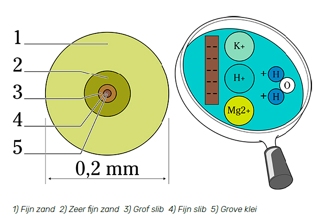 Colloïd = colloïden zijn de fijnste deeltjes in de bodem, met een gemiddelde diameter van minder dan 0,0002 mm. De colloïden bevatten wat organisch materiaal en fijne klei.