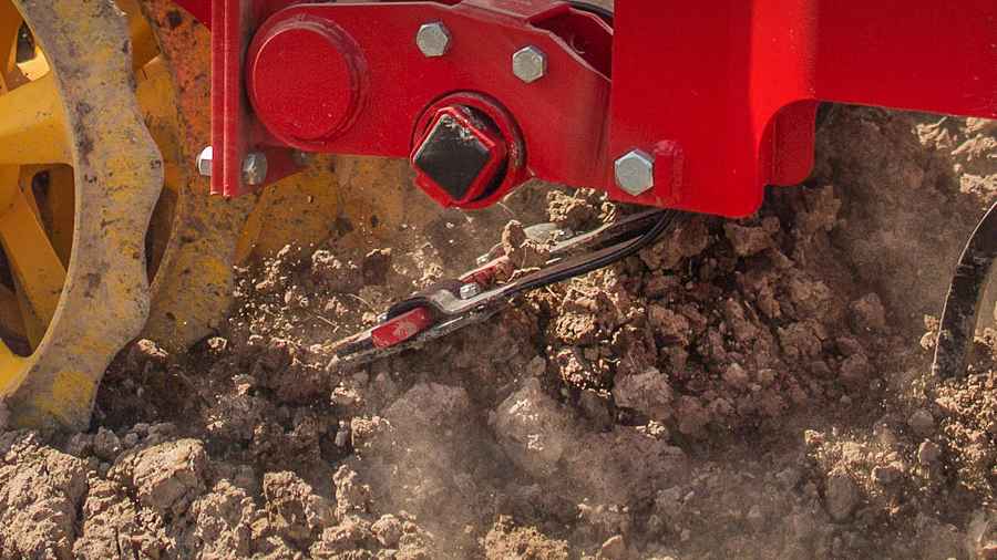 In de eerste werkzone snijden zware triltanden de ploegvoren. Met een tandafstand van 22 cm biedt de RexiusTwin een hoge intensive bewerking.