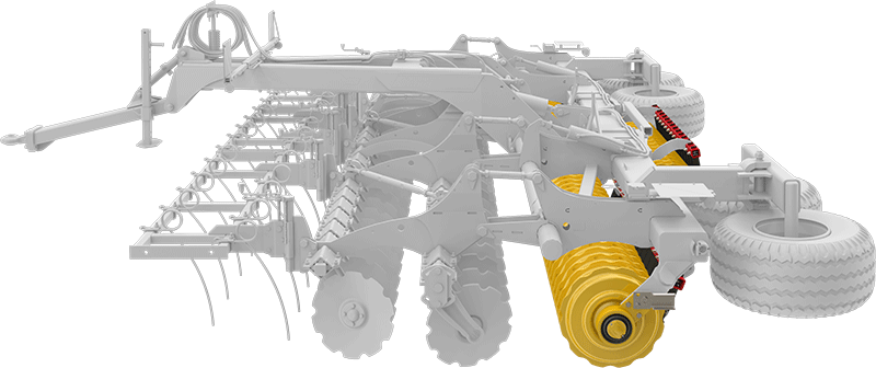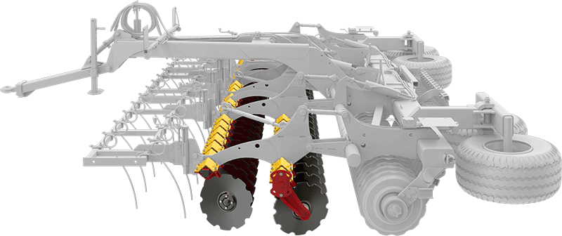 Twee rijen hoogwaardige V-55 geharde Zweedse stalen snijschijven verwerken op agressieve wijze de oogstresten tot 12 cm werkdiepte. De conische vorm van de schijven zorgt voor een lange levensduur en een goede verkruimeling van de grond.