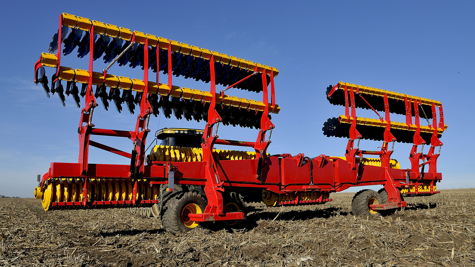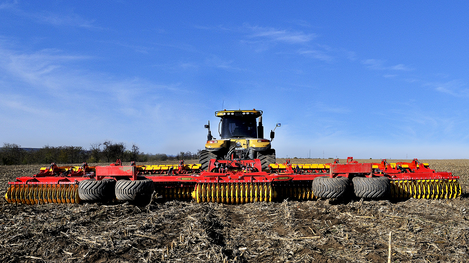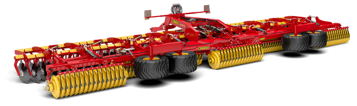 De grote Carrier 1225 heeft een werkbreedte van 12,25 m, dit geeft een lichte overlap in een 12 m CTF-systeem. Dankzij de x-disc-indeling loopt de machine altijd recht achter de tractor. Dit is essentieel bij het gebruik van een GPS-besturing of bij het cultiveren op heuvelachtig terrein.