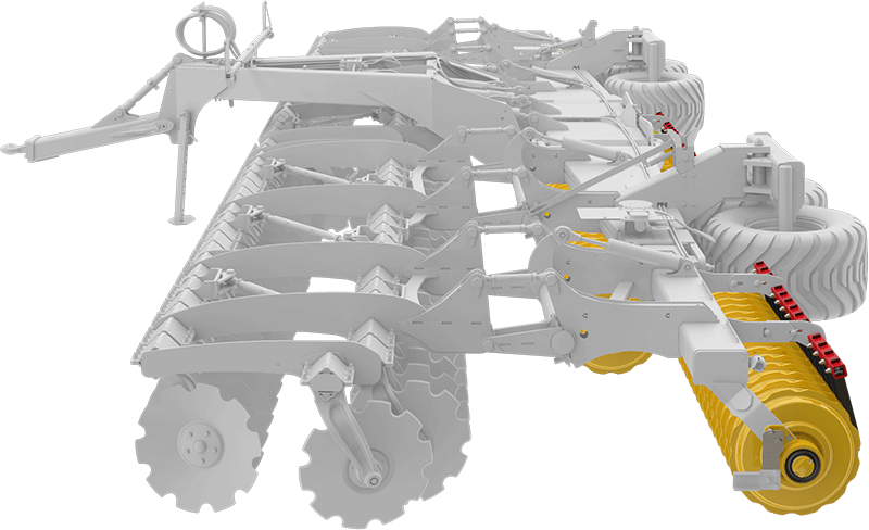 Twee rijen hoogwaardige V-55 geharde Zweedse stalen snijschijven verwerken op agressieve wijze de oogstresten tot 12 cm werkdiepte. De conische vorm van de schijven zorgt voor een lange levensduur en een goede verkruimeling van de grond.