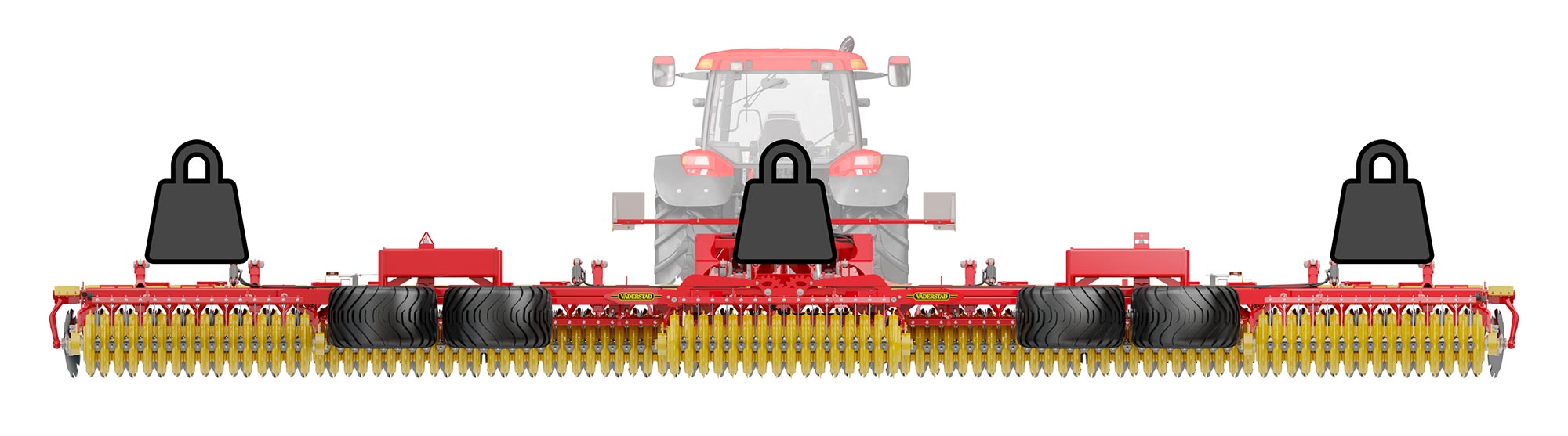 De Carrier 925-1225 is uitgerust met gewichtspakketten in de vleugelsecties. Dit zorgt ervoor dat het gewicht gelijkmatig wordt verdeeld over de volledige werkbreedte zonder de noodzaak van complexe hydraulische oplossingen