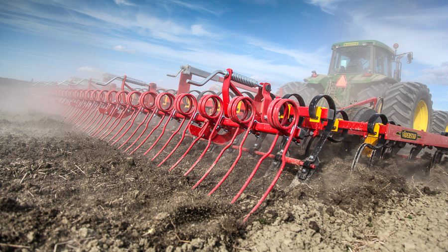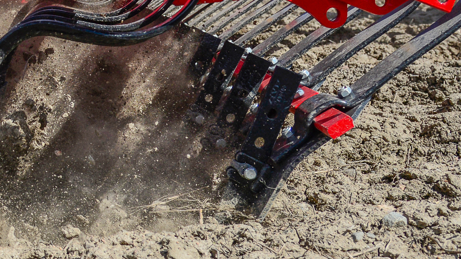 Om de voorbereiding van het zaaibed te voltooien, creëren de trillende eggetanden een verdampingsbarrière terwijl grotere kluiten en onkruid naar de oppervlakte worden gebracht.
