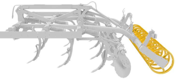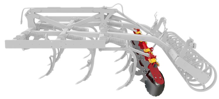 De schijfegalisatoren zijn zo flexibeler aan de hoeveelheid materiaal die langs komt, waardoor diepteaanpassing wordt uitgesteld totdat het echt nodig is. Ze zijn bevestigd met een rubberen ophanging en hebben onderhoudsvrije lagers.