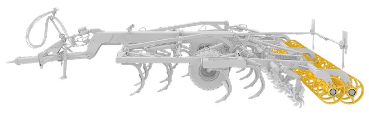 Opus heeft een unieke terugverdichting met vier verschillende opties. Tijdens droog weer kan het gewicht van de cultivator naar de pakker worden overgebracht. Tijdens vochtig weer kan de pakker zweven met zijn eigen gewicht. In zeer vochtige omstandigheden kan de packer worden opgetild of volledig worden verwijderd.