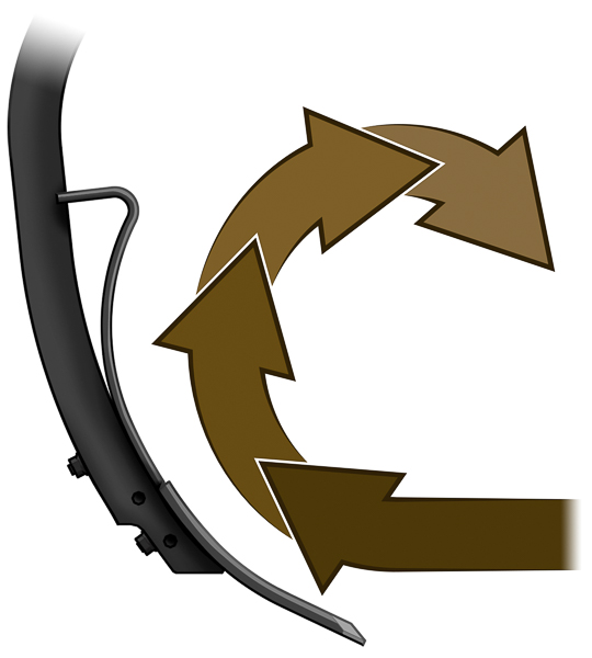 Het bodemmateriaal wordt door de MixIn-geleider voorover geworpen, hierdoor passeert het materiaal de tand nogmaals. De menging is hierdoor optimaal en intensiever dan traditioneel.