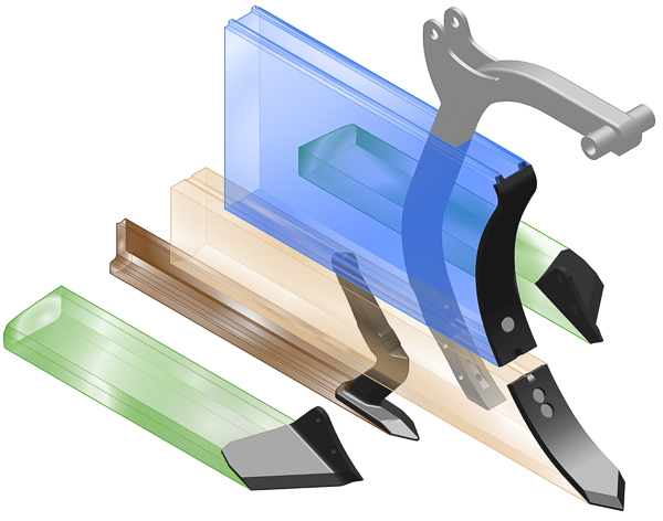 De levellers zijn op een parallellogram gemonteerd, zodat de juiste werkhoek op elke diepte wordt gehandhaafd.