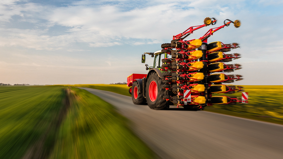 In combinatie met de fronttank FH 2200 kan Tempo V meststof op hoge snelheid combineren.