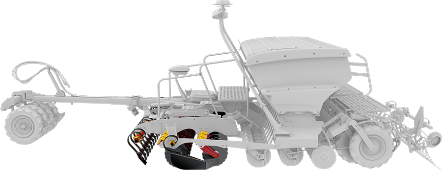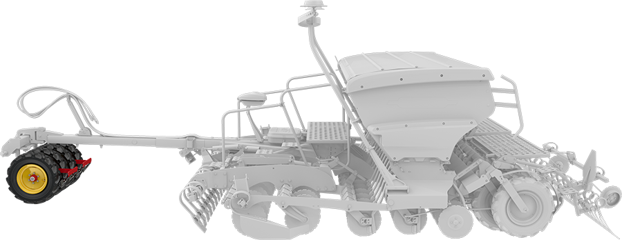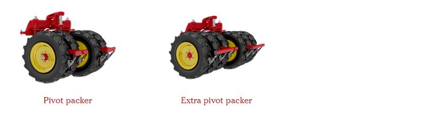 Voor het zaaien wordt de grond verdicht door de wielen van de tractor. De pivotpacker op Rapid zorgt ervoor dat dezelfde verdichting wordt gedaan tussen de tractorwielen.