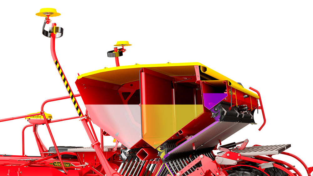 De combimodellen Rapid 300-400C zijn uitgerust met een instelbare wand die het zaad en de meststof in de voorraadtank scheidt, zodat de gebruiker te allen tijde de maximale capaciteit uit de machine kan halen.
