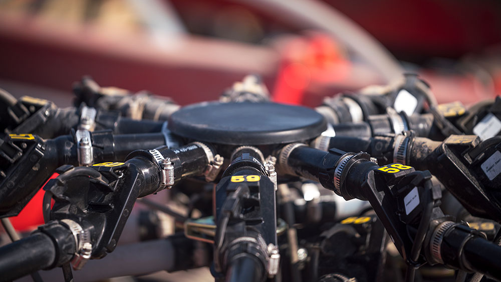 Het systeem bestuurt de meters op uw Seed Hawk Air Cart en de openers op uw Seed Hawk-werkbalk om de rotatie van de rollen en de productstroom onmiddellijk te stoppen wanneer de werkbalk eerder geplaatste grond raakt. Het tilt ook de openers op, zodat u de precieze plaatsing van zaad en kunstmest die al voltooid is, niet verstoort.