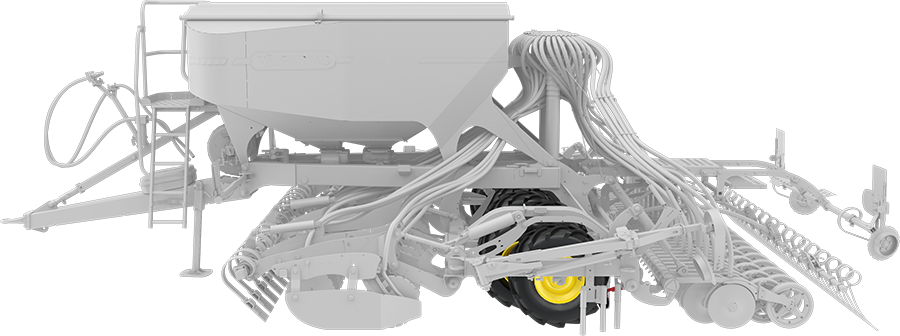 Elke individuele zaaikouter heeft een breed perswiel voor het kouter. Hierdoor kunnen de zaaikouters reageren op onregelmatigheden of bodemvariaties op het veld, waardoor de werkdiepte constant wordt gehandhaafd. De royale diameter van het perswiel van de kouter zorgt verder voor een soepel rijgedrag met minimale trillingen, waardoor de precisie bij hoge snelheid wordt verhoogd.