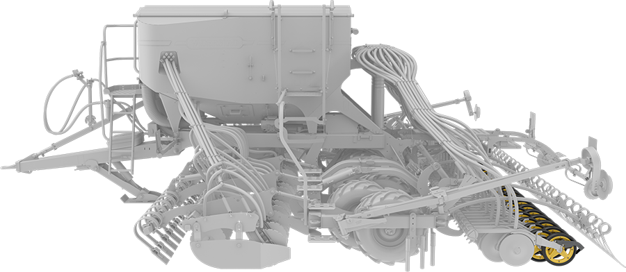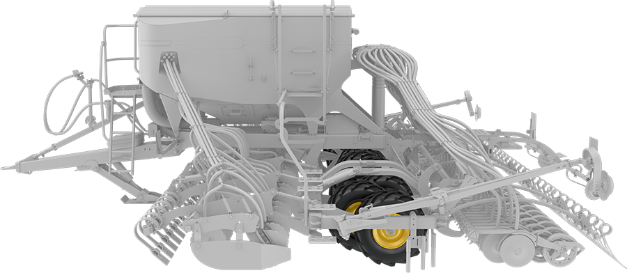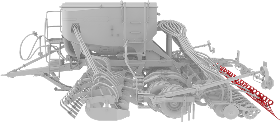 Om voor het zaaien een stevig zaaibed te garanderen, consolideren grote packerwielen de grond tussen het voorgereedschap en de zaaikouters. Dit biedt grote voordelen in lichtere grond, maar ook op velden waar de grond los is als gevolg van een diepe teelt of een teelt met onvoldoende reconsolidatie.