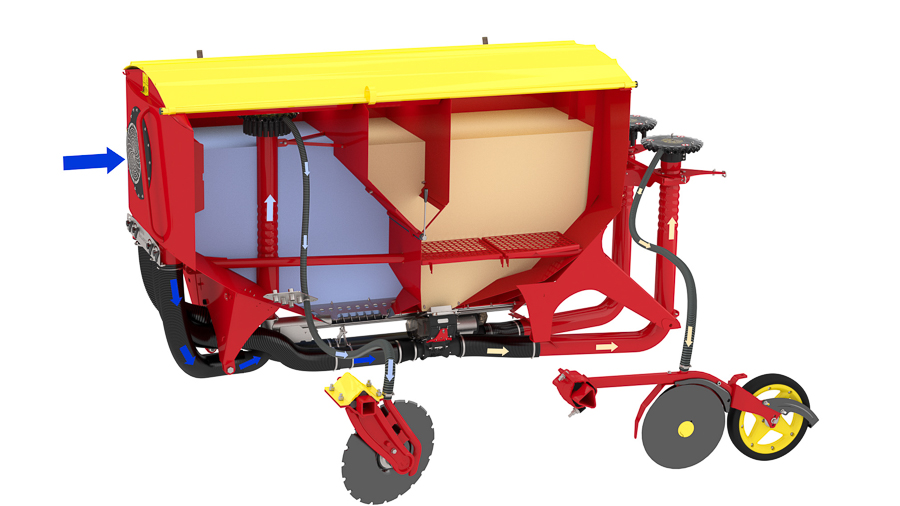 Vanwege de hoge locatie van de geïntegreerde ventilator, wordt de stofopname geminimaliseerd, waardoor de nauwkeurigheid van het zaaien wordt vergroot.